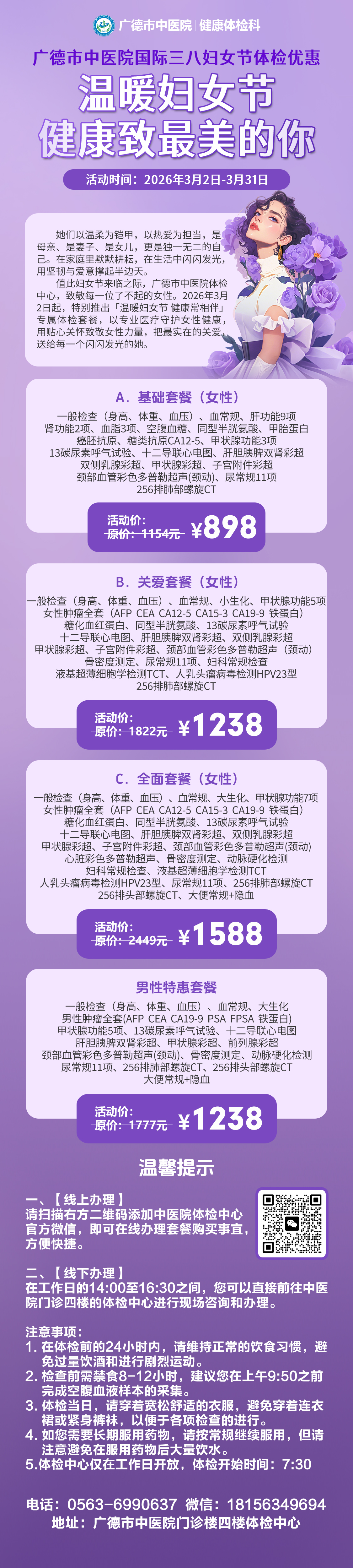 【温暖妇女节,健康致最美的你】广德市中医院三八妇女节体检优惠活动