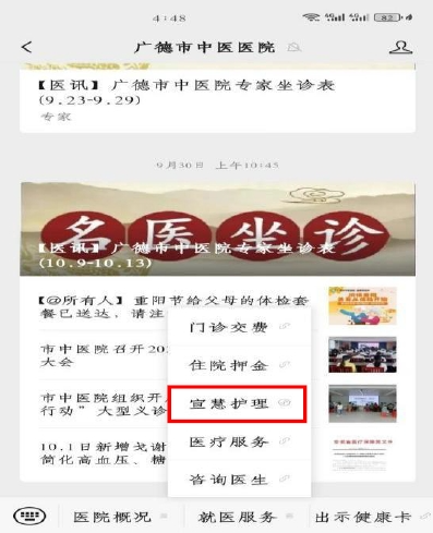 方法二 关注广德市中医医院公众号进入“宣慧护理”小程序